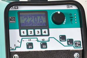 • Digital-Anzeige für Schweißstrom, Zeit und Frequenz – mit Voranzeige und Holdfunktion.