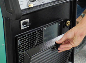 Die gesamte Steuerelektronik für den Drahtvorschub ist als Einsatz für die Bedienfront ausgelegt. Ein einfacher, schneller Austausch ist jederzeit möglich. Alle elektrischen Anschlüsse sind über Steckerverbindungen geführt.
