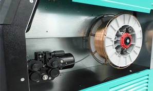 • Serienmäßig 4-Rollen-Drahtvorschubgetriebe.